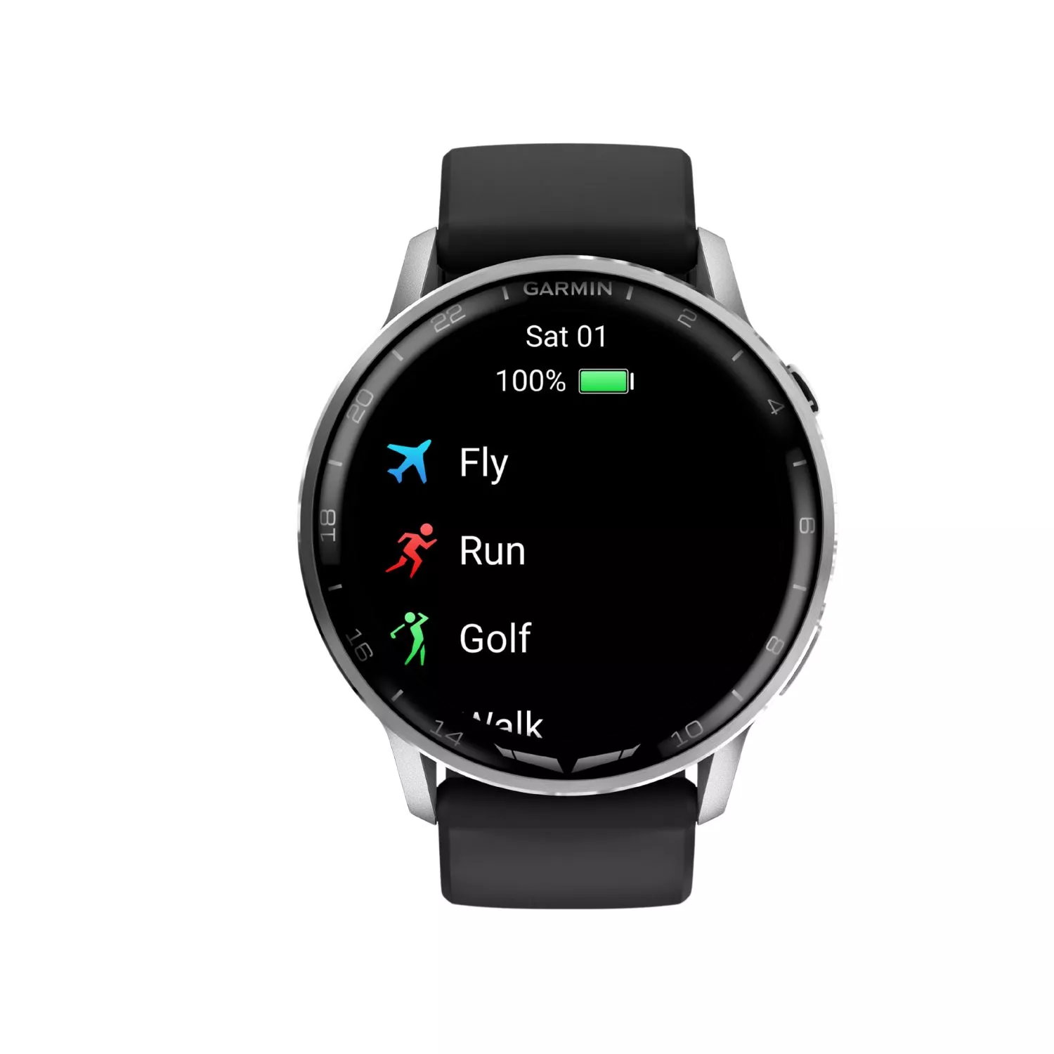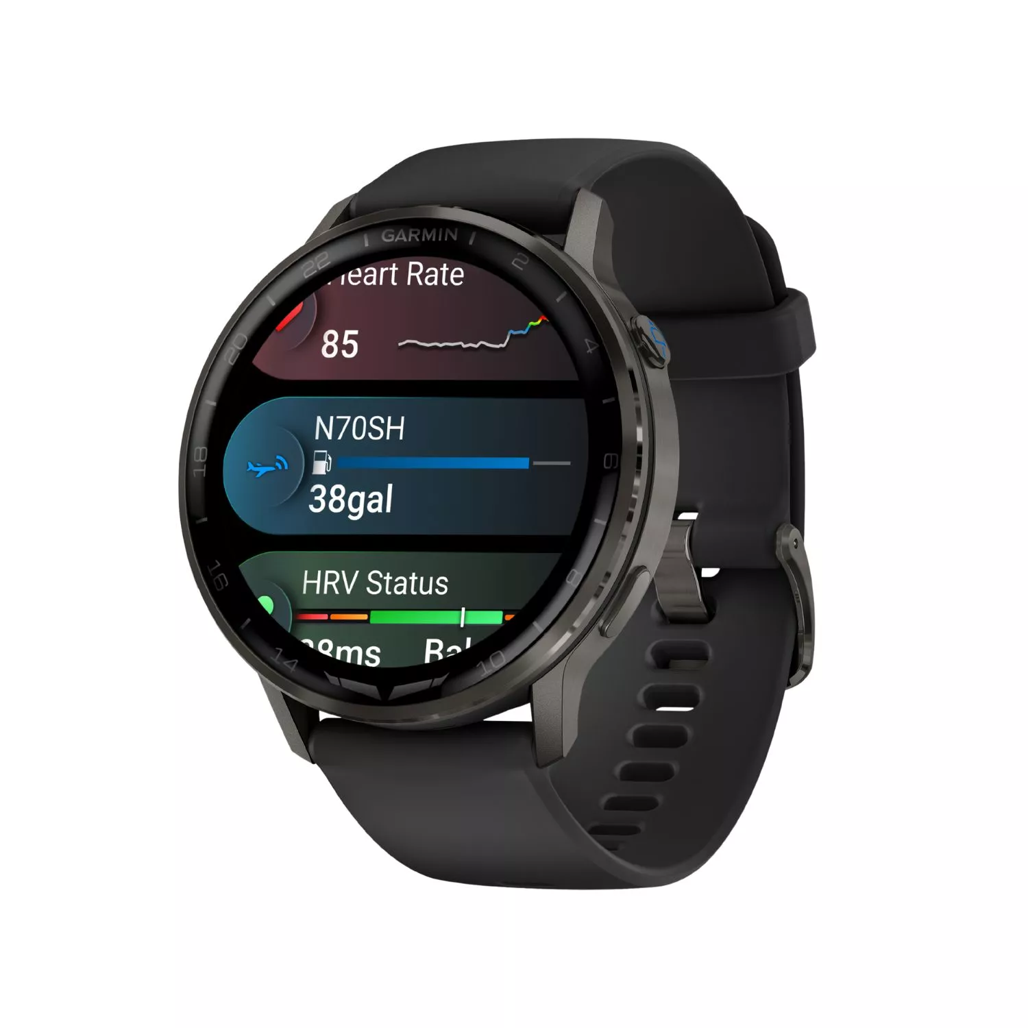 The Garmin D2 Air X15 is a sleek and lightweight aviator smartwatch designed for pilots and active users who want advanced features in a refined, everyday wearable. It features a bright 1.4 inch AMOLED color touchscreen with a crisp 454 x 454 resolution, offering excellent visibility in both cockpit and outdoor environments. The stainless steel bezel paired with a stainless steel and fiber reinforced polymer case delivers durability while maintaining a modern, streamlined look, complemented by a comfortable black silicone band.