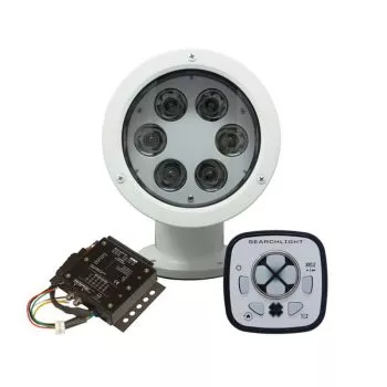 The ACR RCL-50 LED White is a high-performance marine-grade searchlight system designed for serious boaters who demand power, precision, and reliability. This configuration includes the RCL-50 LED searchlight in white, paired with ACR’s upgraded URC-104 Master Controller and URP-103 Point Pad remote, delivering intuitive and responsive control at the helm. Featuring a six-LED array that produces over 100,000 candela of peak intensity, the RCL-50 LED offers brilliant illumination with a 10° beam angle, capable of reaching long distances while using 50% less power than halogen alternatives. Its LEDs are rated for up to 40,000 hours, ensuring long-lasting performance with minimal maintenance.