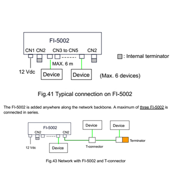 Furuno's FI5002 6-Port Junction Box supports both 12VDC and 24VDC Networks, has 2 NMEA2000 backbone ports and allows up to 6 NMEA2000 components to be networked together.